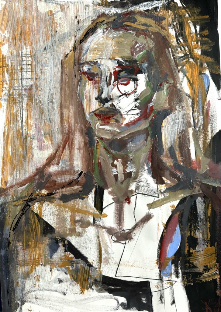 Acrílico, óleo, cera, lápiz y tinta sobre tabla