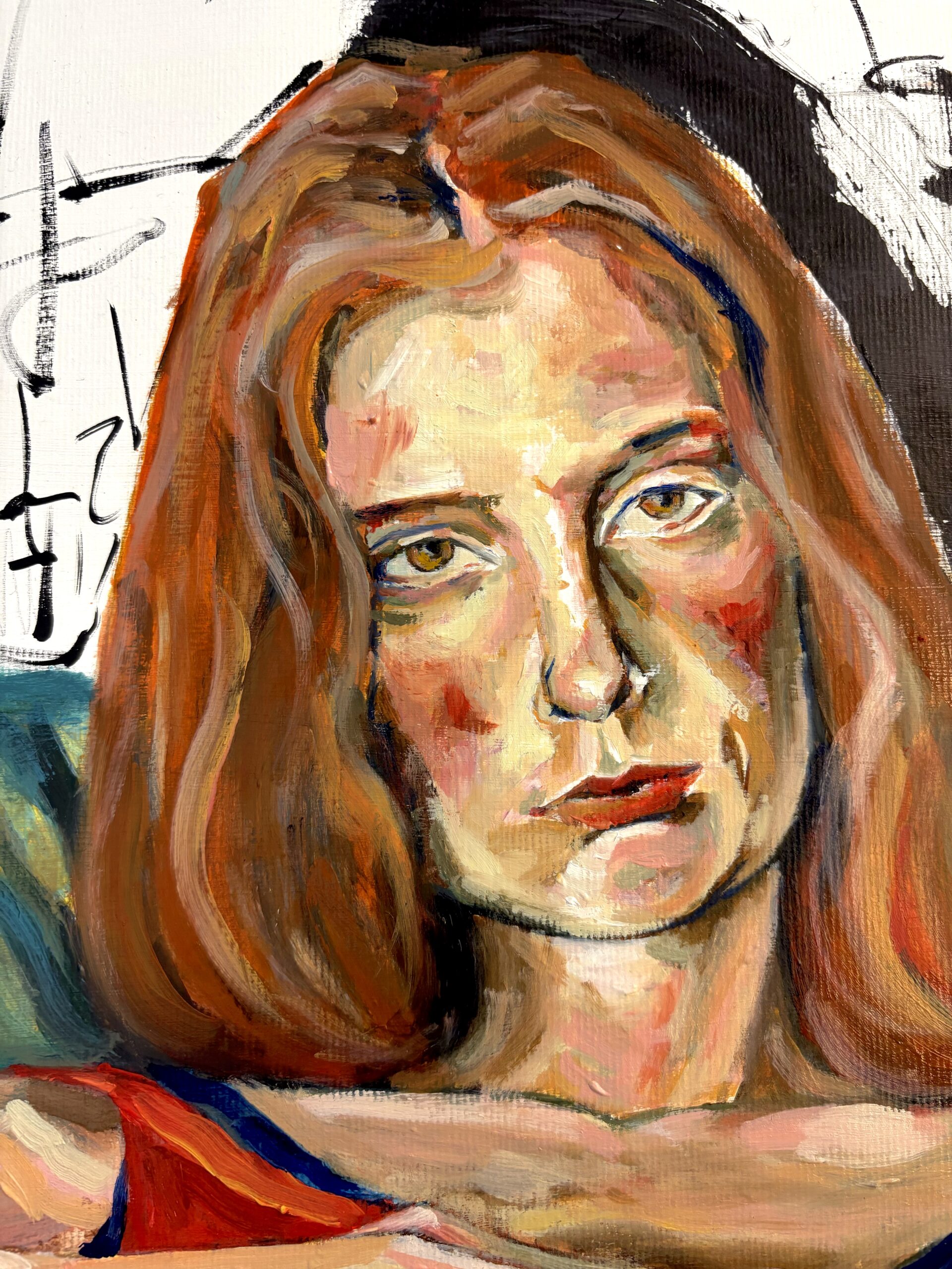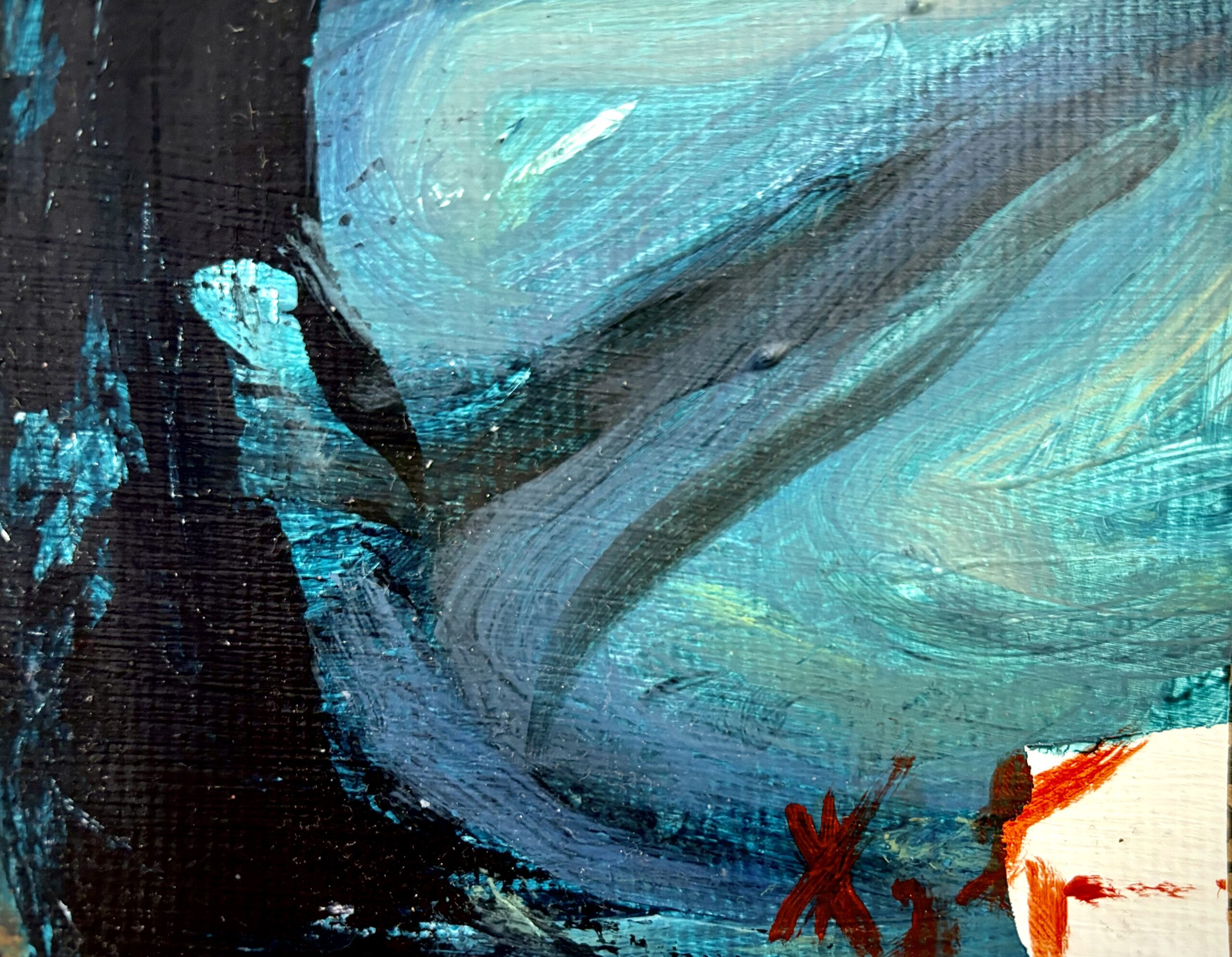 Es una técnica mixta sobre papel, de base tiene acrílico, después detalles en tinta y la figura en óleo.