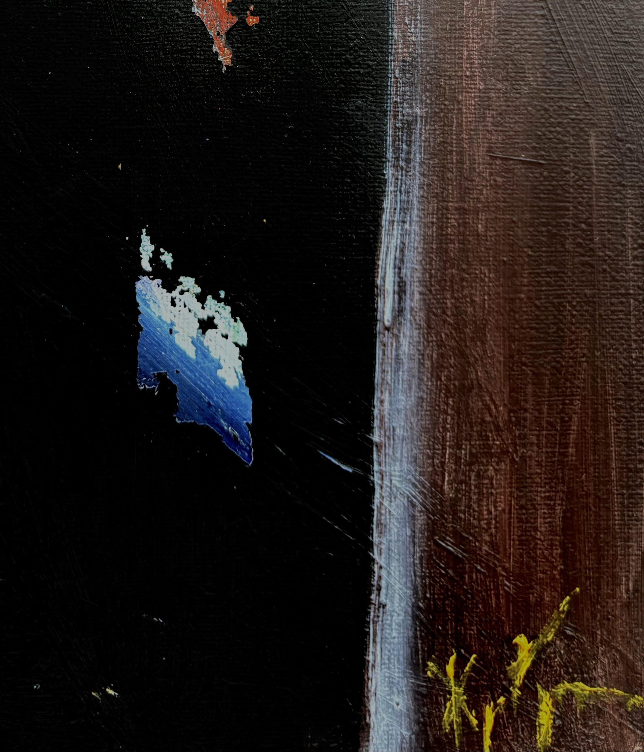 El proceso de esta obra ha sido curioso. Lo primero es que ni siquiera estaba destinada a estar en ese lienzo. Empecé con una pintura completamente distinta (muy experimental, pero que no llegó a buen puerto ).